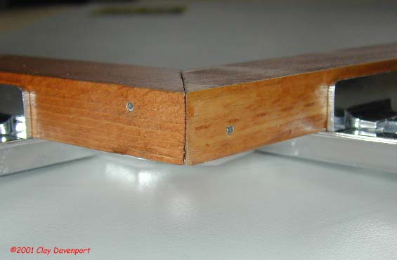The corner was nailed with finishing nails to hold it securely. Offseting the nails is important to avoid hitting one nail with the other. I let each joint dry for 30 minutes before removing the clamp.